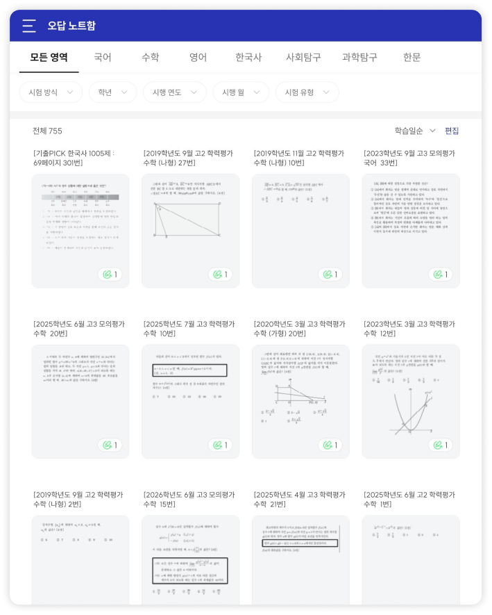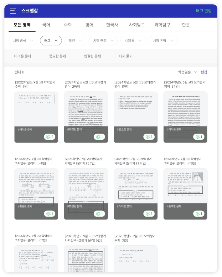 시험 전 다시 보고 싶은 문제, 헷갈렸던 문제만 태그별로 스크랩해서 관리할 수 있어요.